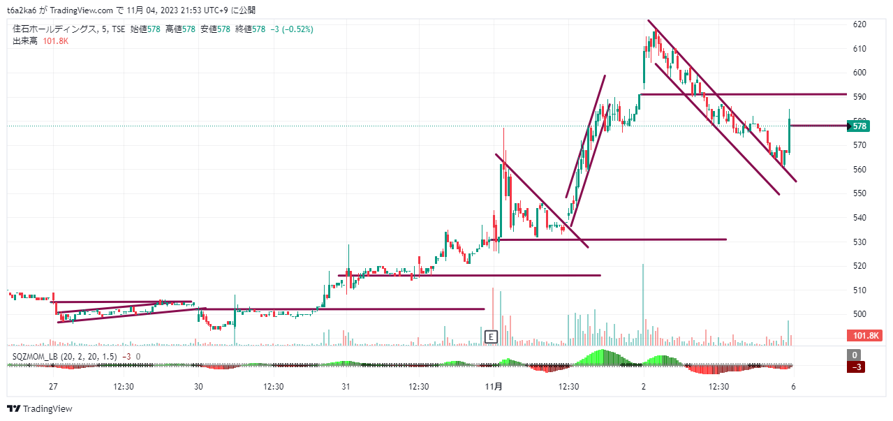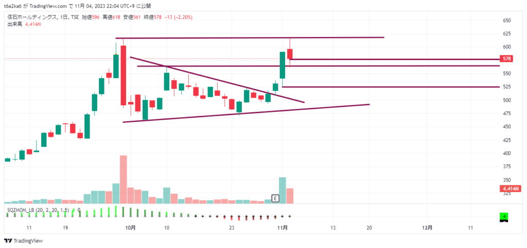 今回は第2四半期決算が好調であった、住石ホールディングスのチャートを見ていきたいと思います。