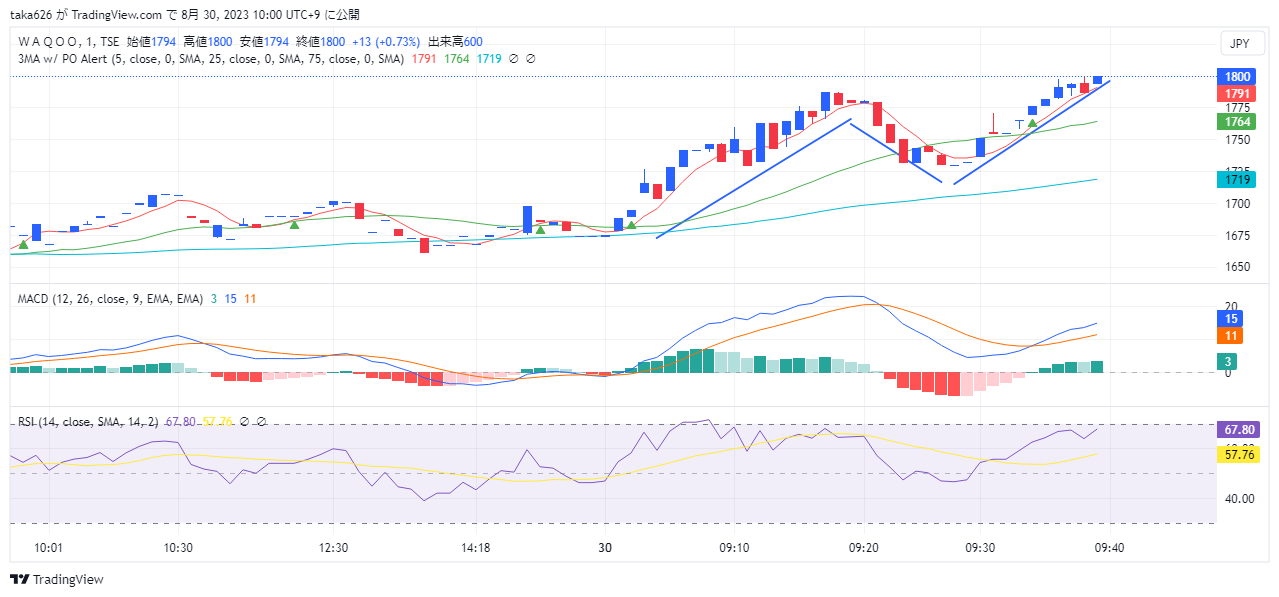 WAQOO(4937)のチャートが綺麗