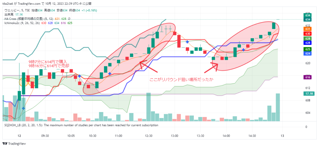 その後、ウェルビーのチャートを見ることはなかったのですが、この記事を書く際にチャートを見直したら、リバウンド狙いが出来る箇所が2箇所見つかりました。