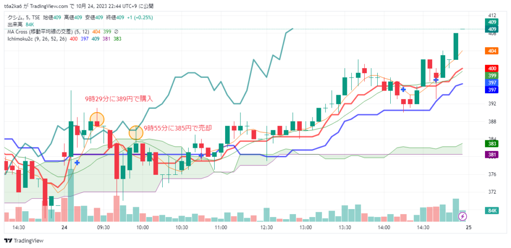 本日デイトレをしたクシムですが、9時29分辺りに購入したのですが、私はこの段階で、まだ上昇すると思い、購入しました。