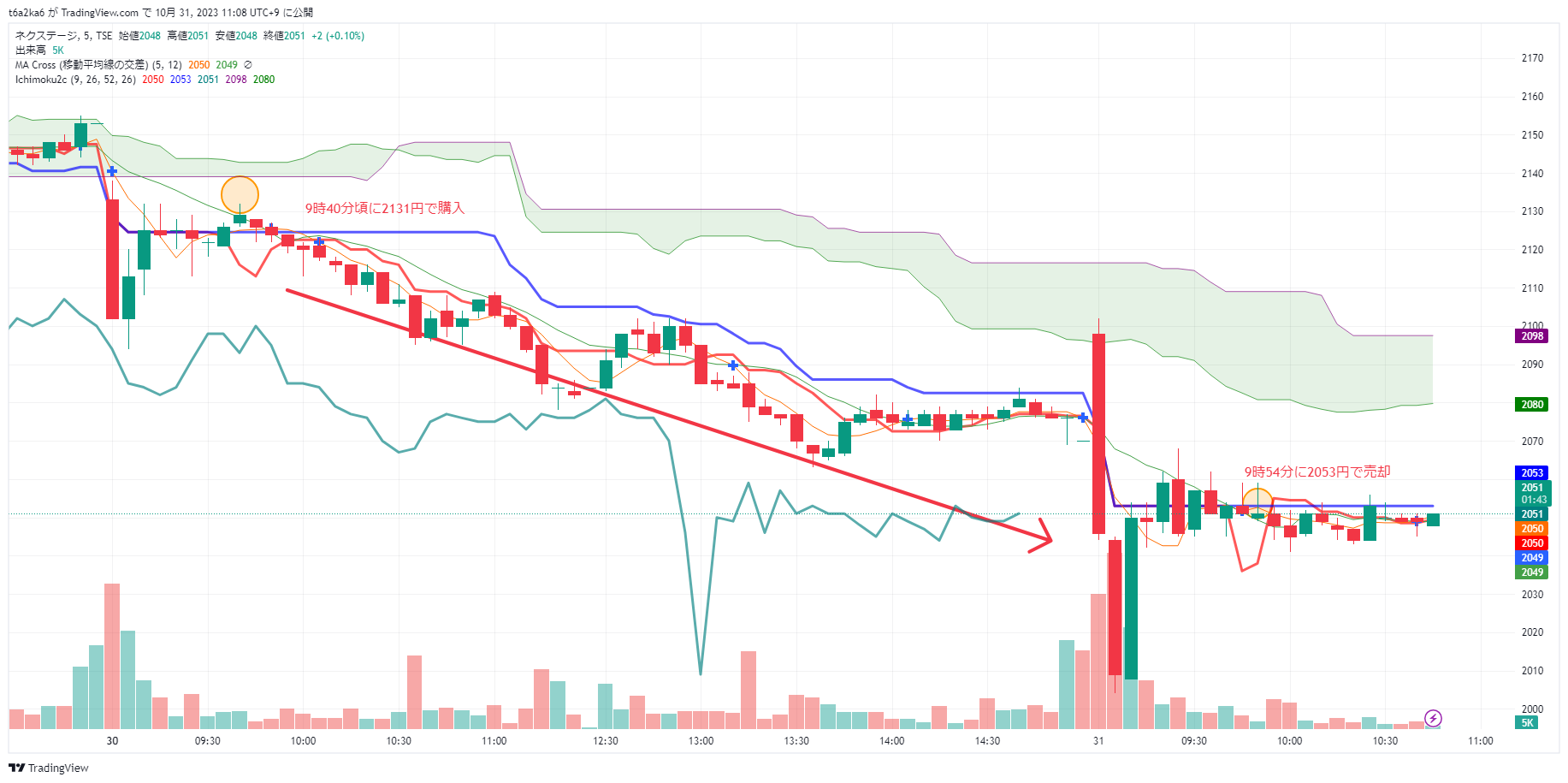 ネクステージについてですが、チャート研究と称して2回程取り上げてましたが、実際の取引で大負けしました。購入したとたん下落の一方でした。
