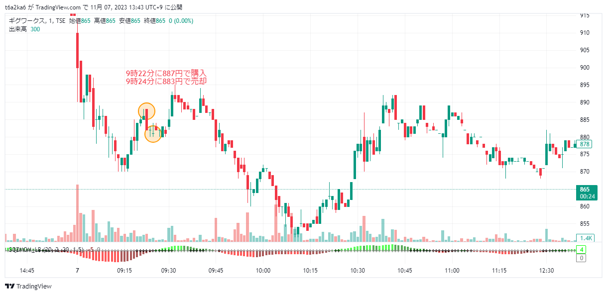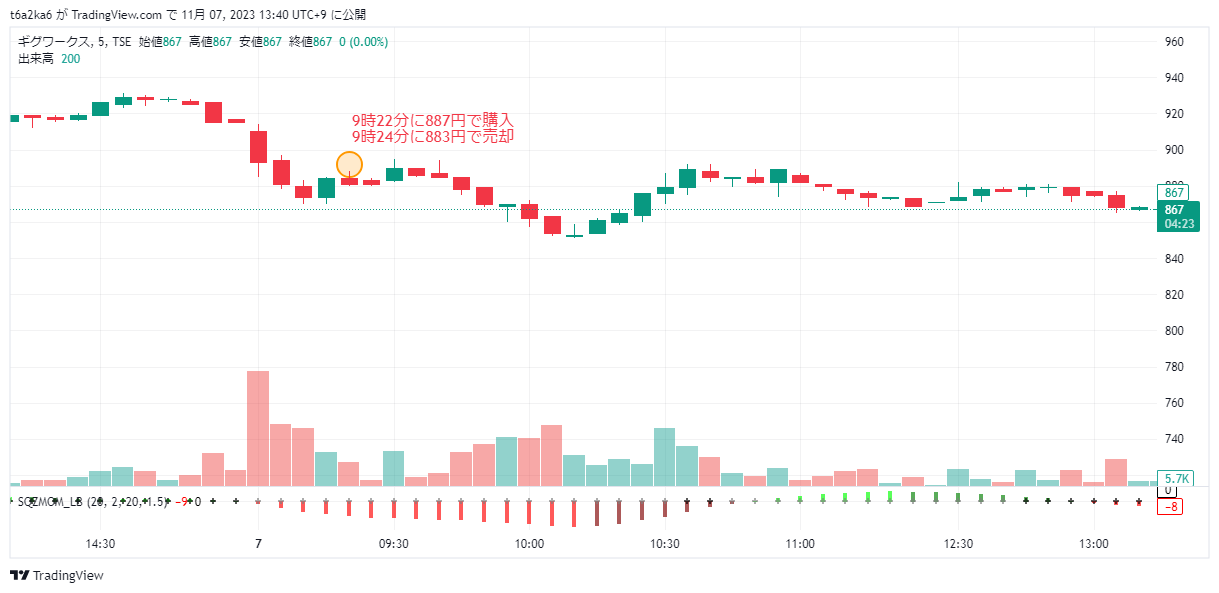 2023年11月7日デイトレ ギグワークス エントリーポイントが遅すぎた結果が・・・・・・