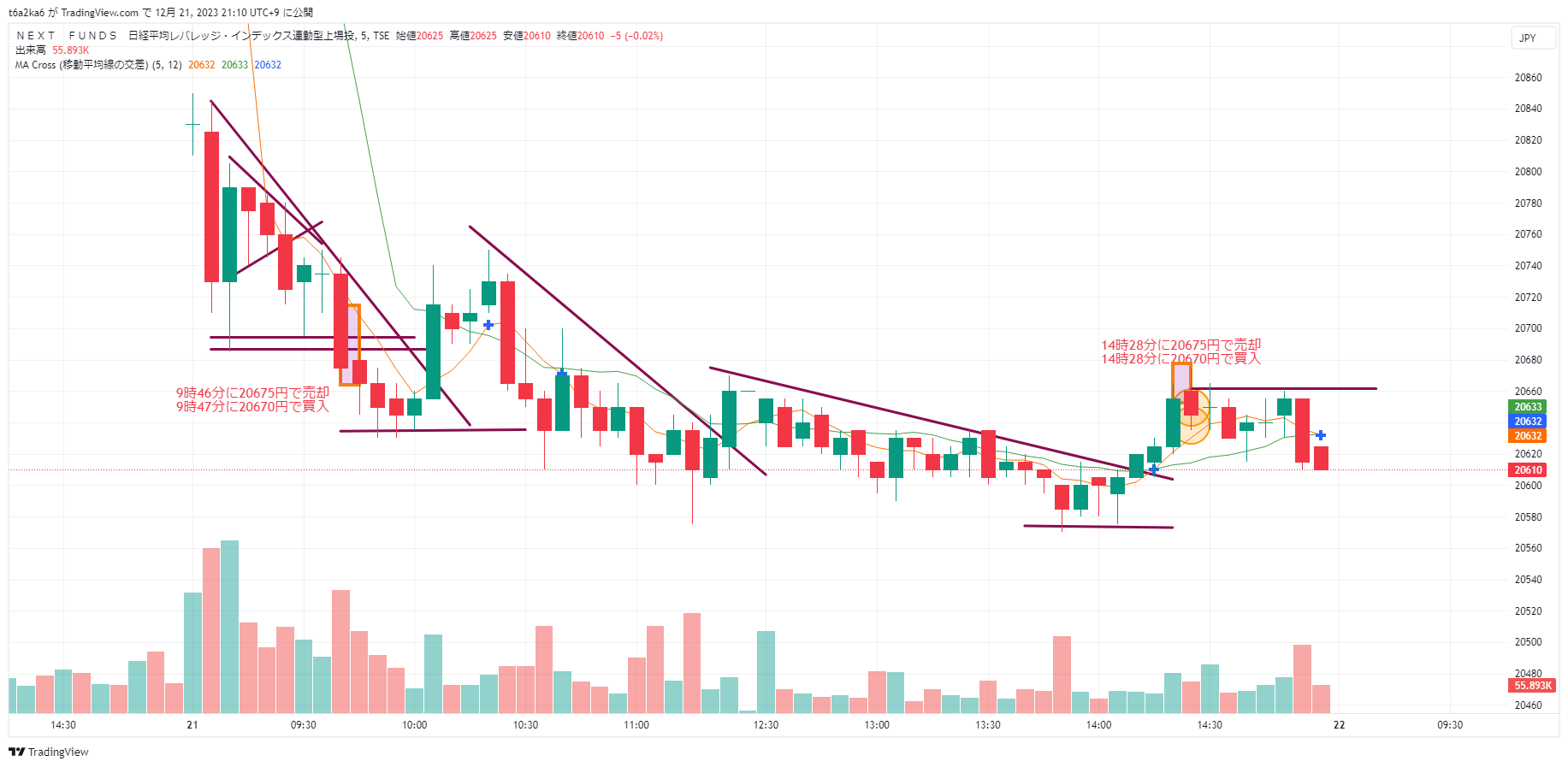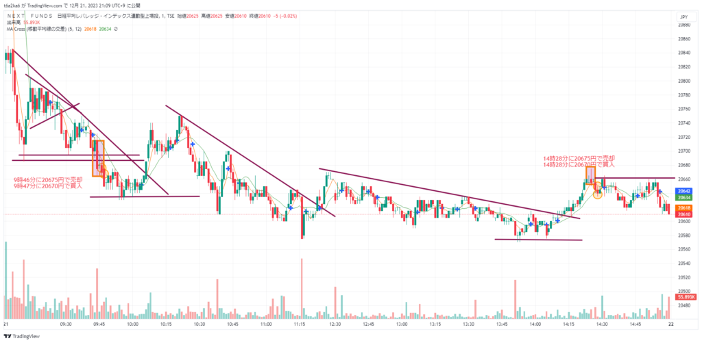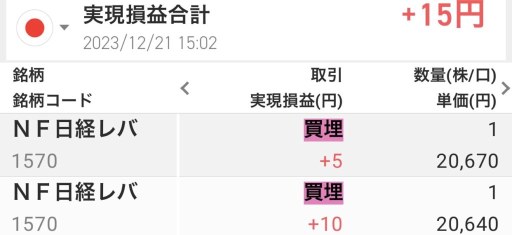 2023年12月21日デイトレ NF日経レバでトレード練習11日目 エントリーに仮説を立てる