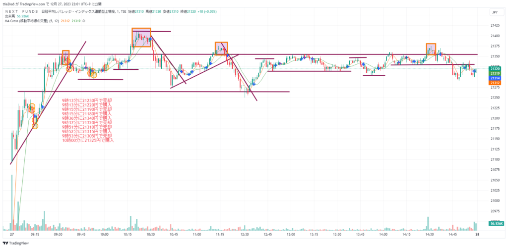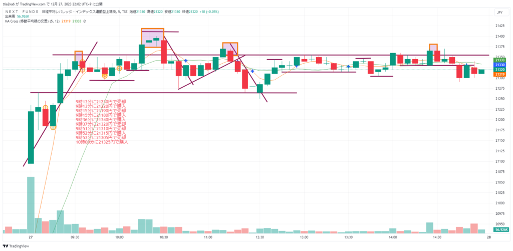 2023年12月27日デイトレ NF日経レバでトレード練習14日目 レンジ相場は入らない