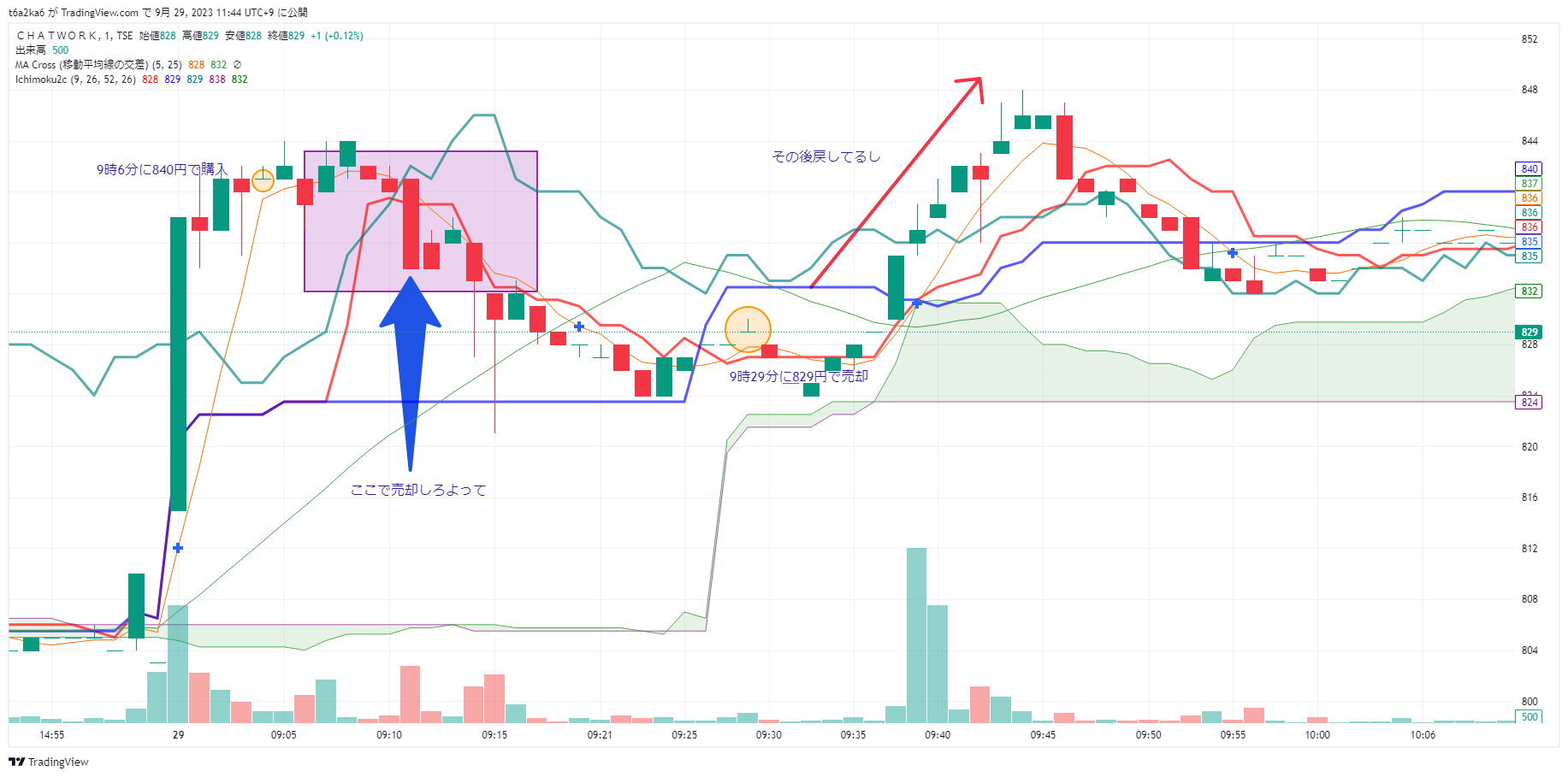2023年9月12日デイトレについて CHATWORK及び三菱UFJフィナンシャル