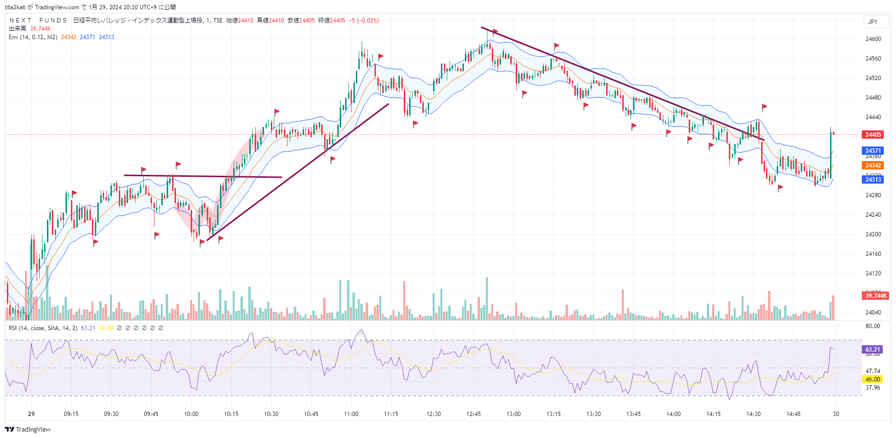 後場は綺麗にトレンドラインが引けました。