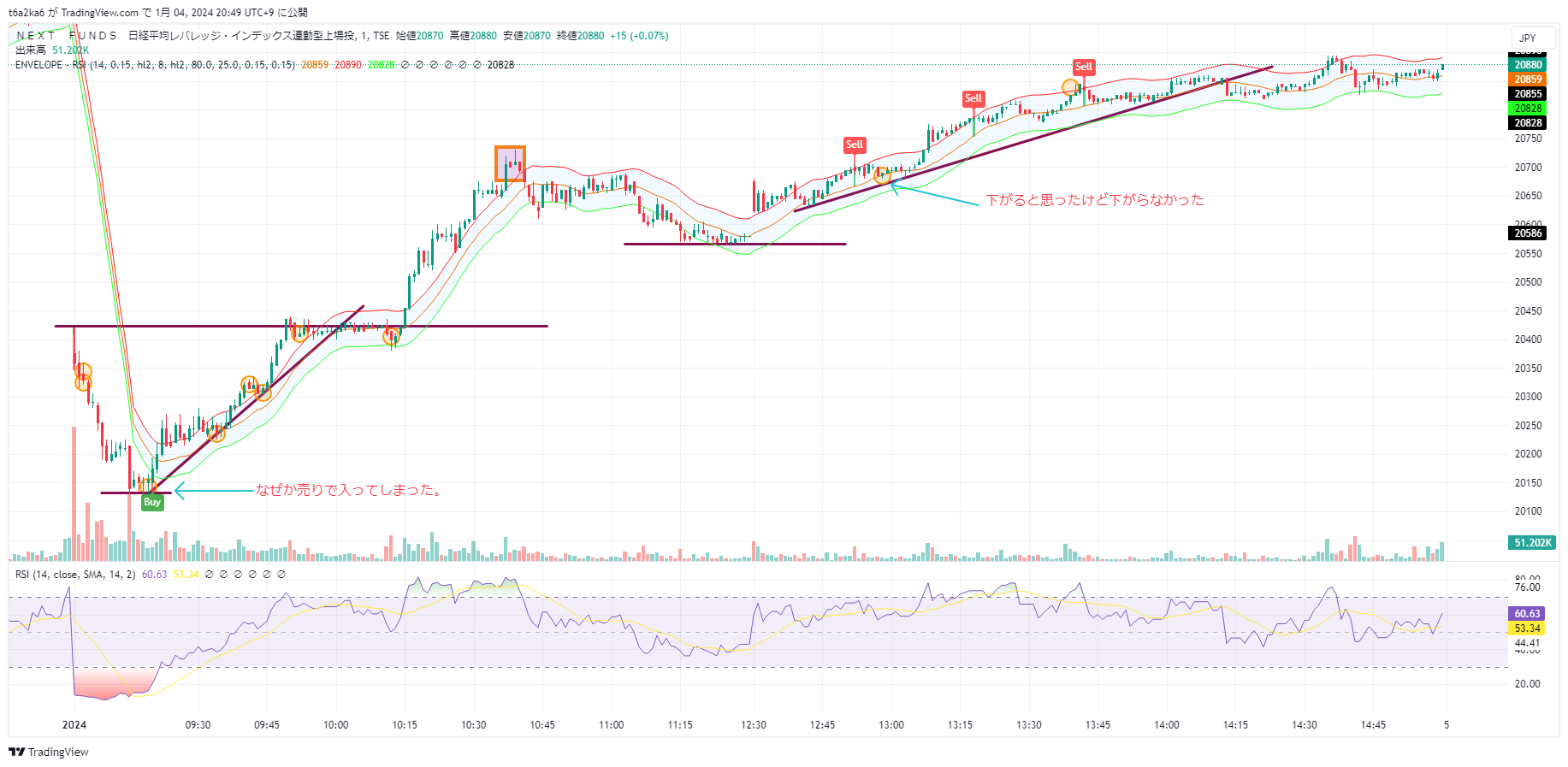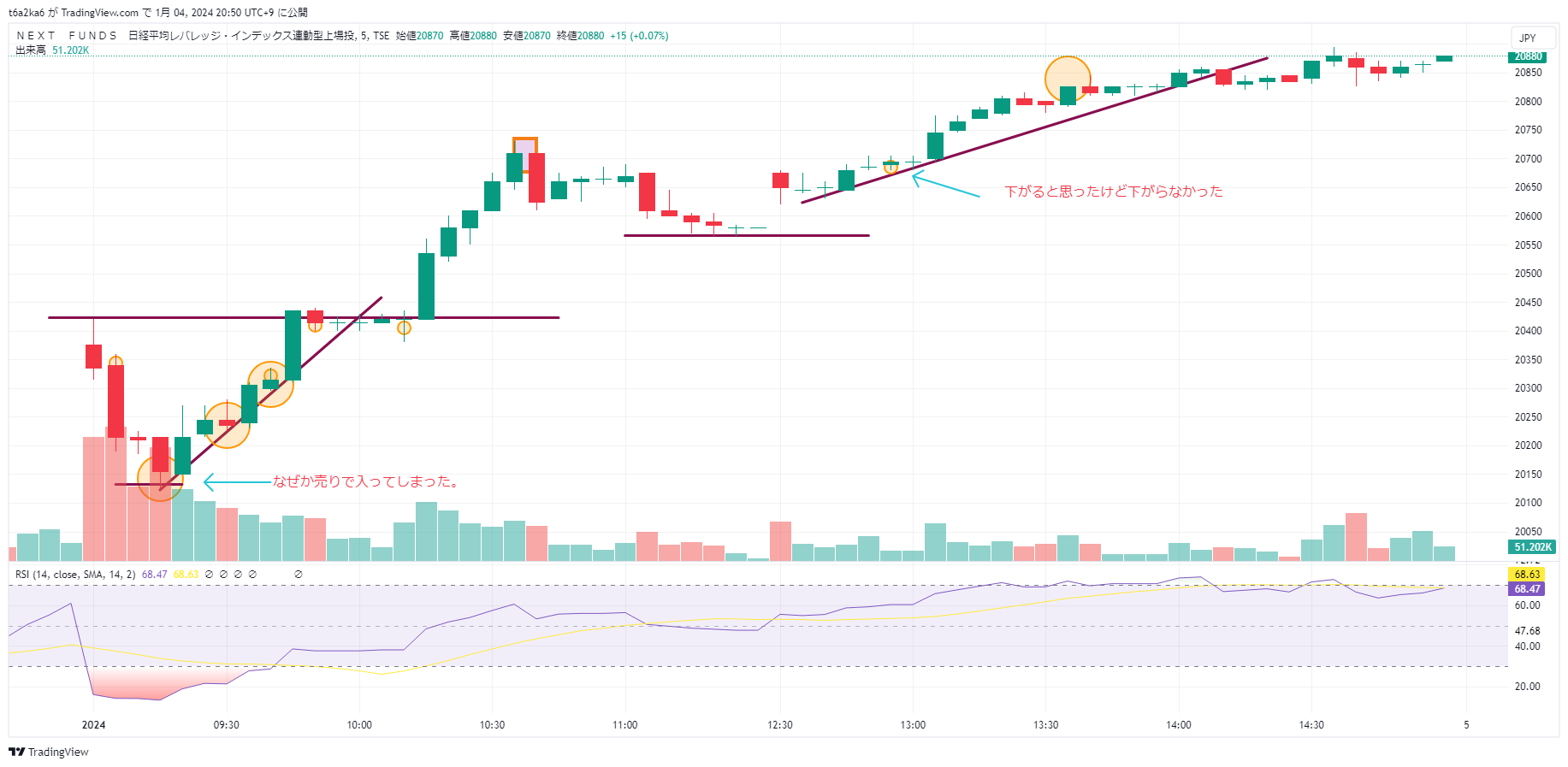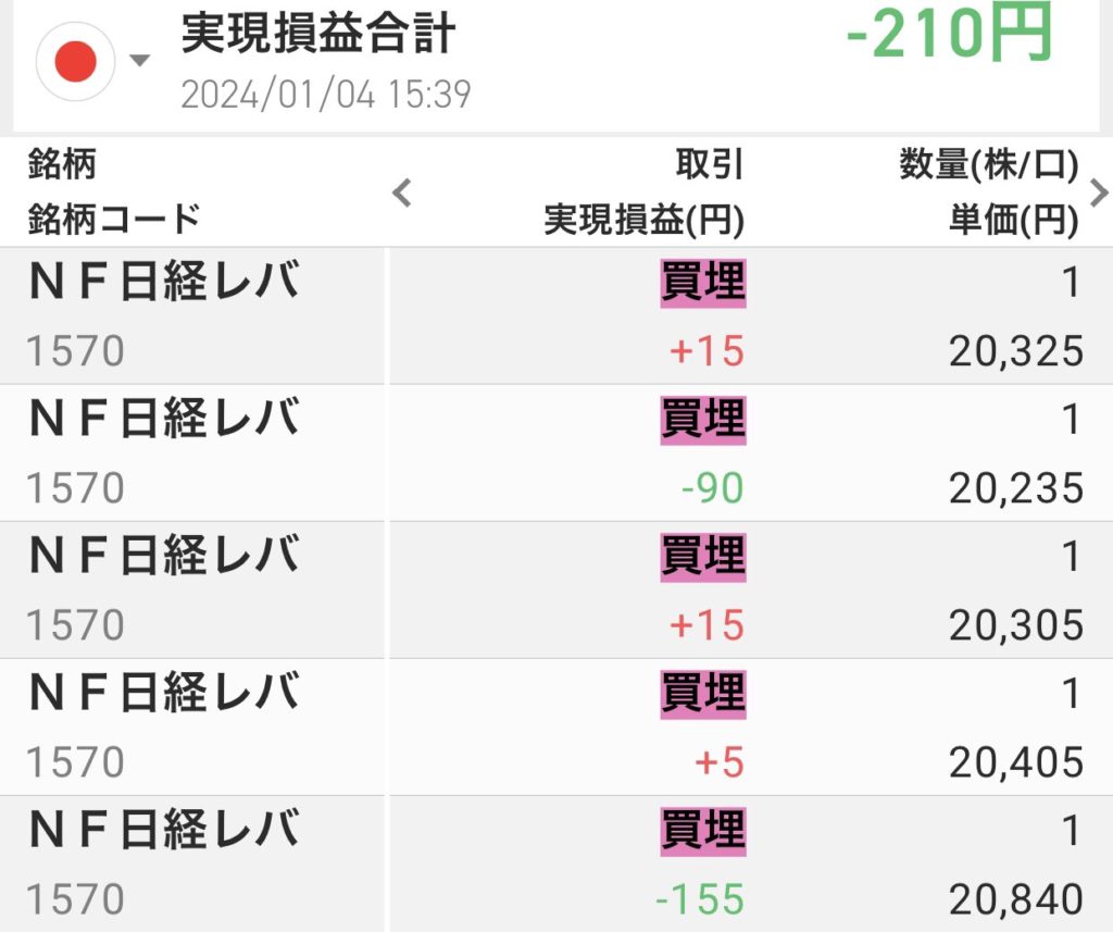 2024年1月4日デイトレ NF日経レバでトレード練習16日目 明けましておめでとう!