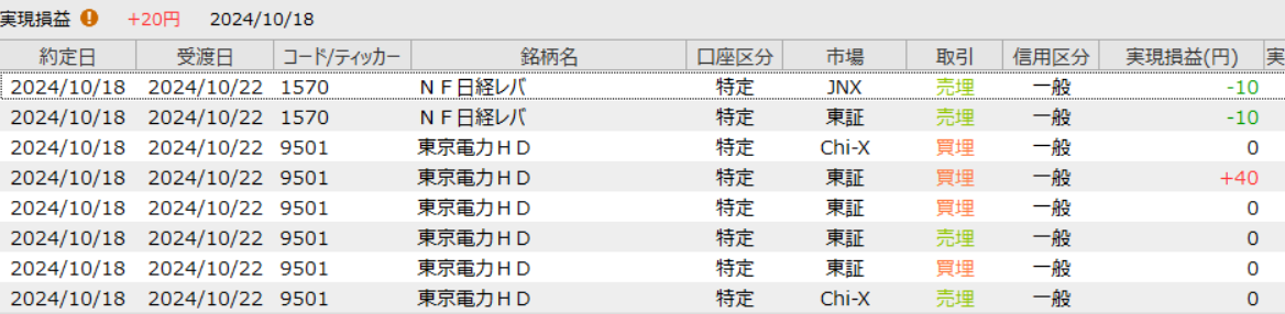 20円のプラスでした。同値撤退が多すぎました。