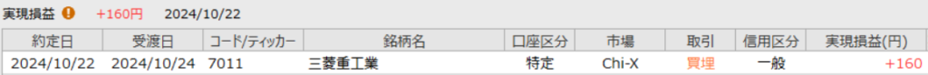 160円のプラスでした。重工スイングは触ったことありますが、デイでは初めてでした。