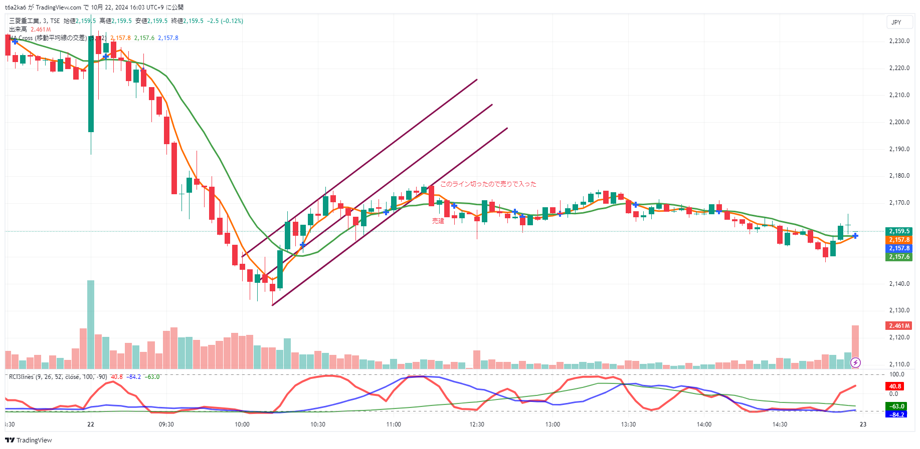 ・エントリーできたが、値幅をとれなかった。やっぱり、チキン利確。