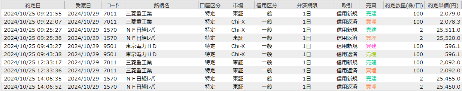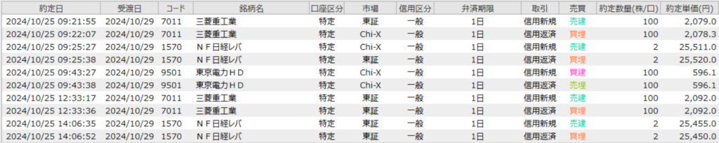 2024年10月25日 デイトレ 三菱重工業他 中々エントリーできずやきもき