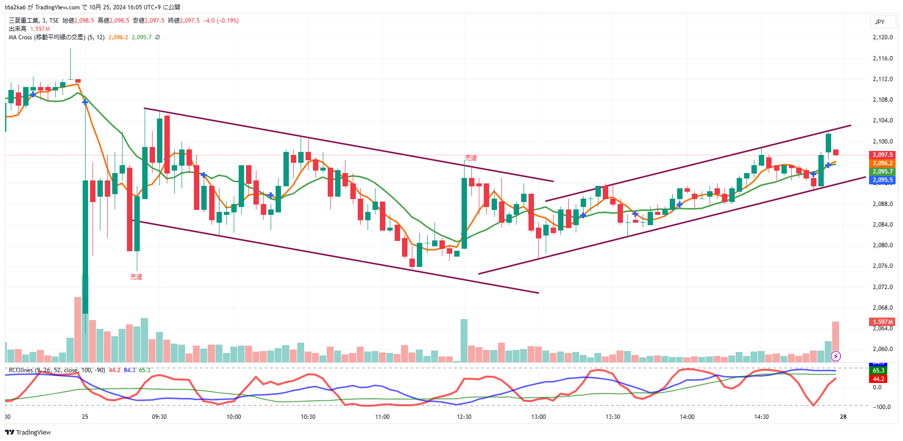 ・三菱重工業の3分足