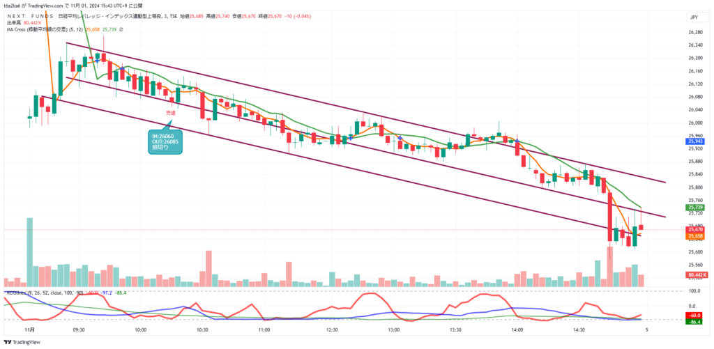 ・ギャップダウン後のリバウンドを狙ったが、曖昧なところでエントリーしてしまった。