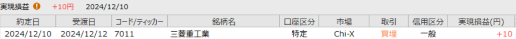 2024年12月10日 デイトレ 三菱重工業 今日もショボトレ