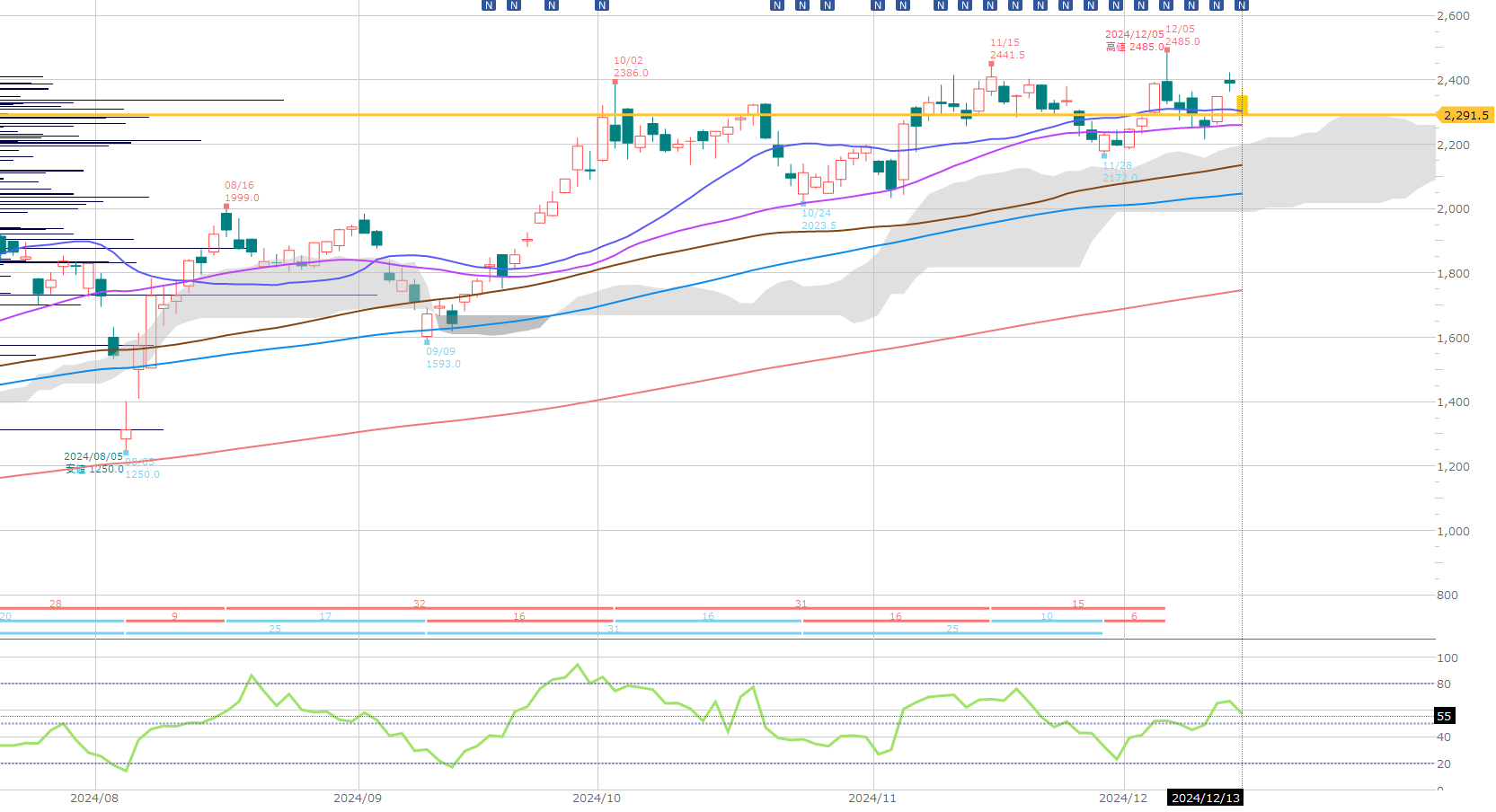ただ前回の安値を割るから、上昇トレンドから外れるのか? 8月の時のように、強い戻りがあれば別だと思うのですが。年末のこの時期どうなんでしょう。
