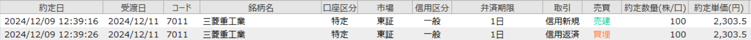 2024年12月9日 デイトレ 三菱重工業 情けない情けない情けない
