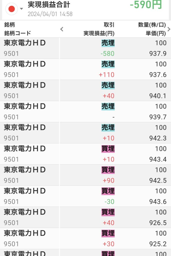 ・3回程エントリーした瞬間踏みあげられた。エントリー精度が悪かった。ちょっと後場最後のほうで集中力欠けてたのもあったのかもしれません。