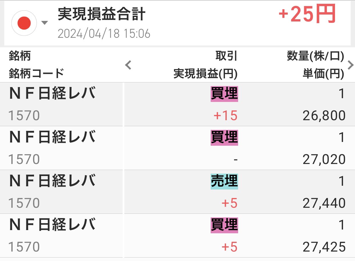 2024年4月18日 デイトレ 日経NFレバ 今日もちょろっとレバ練