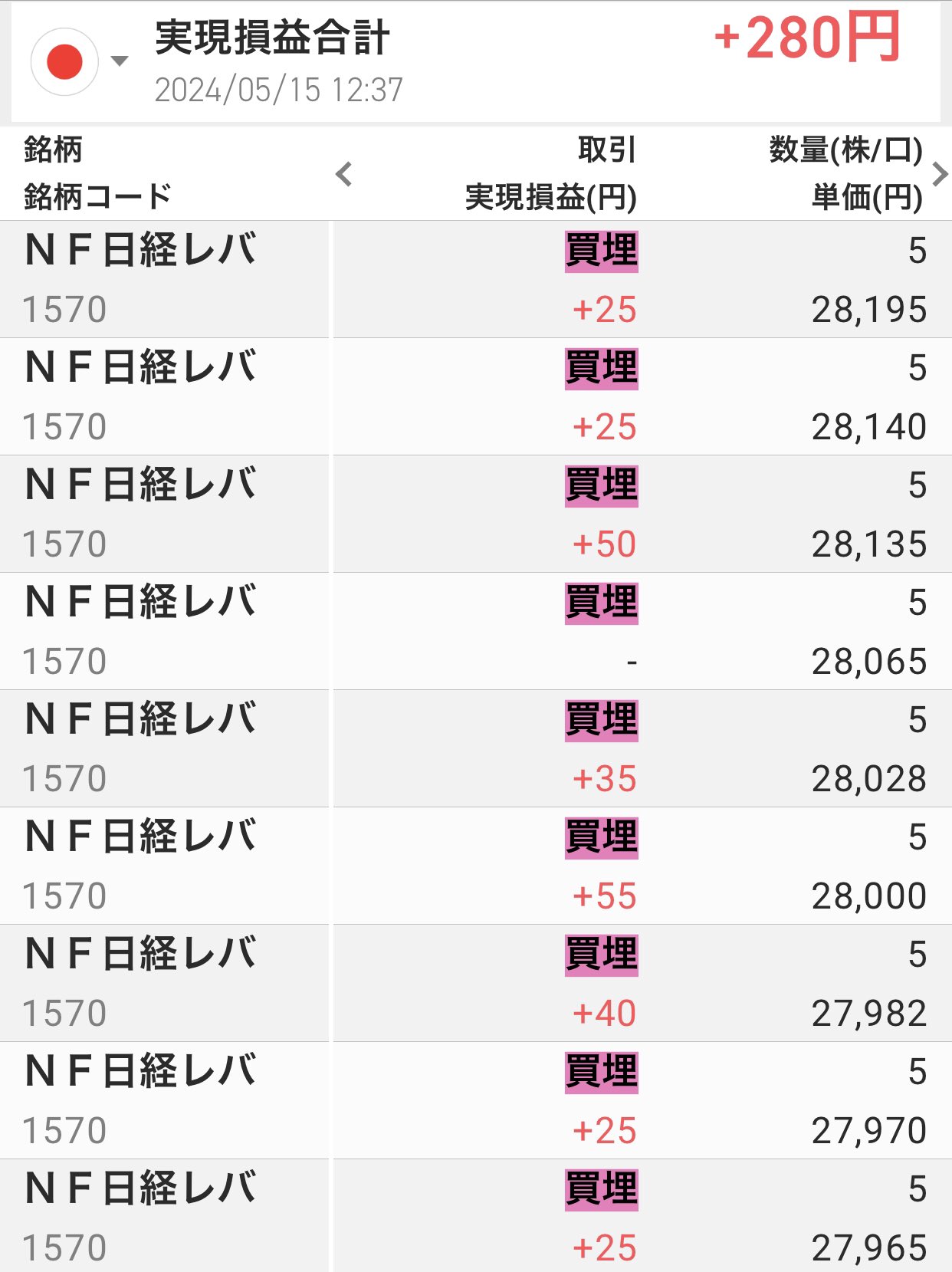 2024年5月15日 デイトレ 日経NFレバ 2回程お祈りをしてしまった