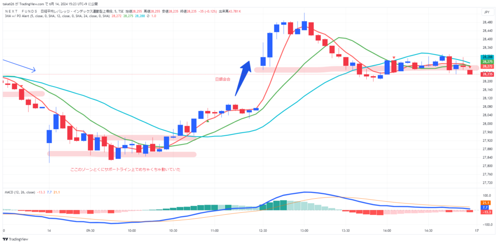 今日は日銀会合の発表がありました。そのせいか日経レバは前場はモミモミでした。