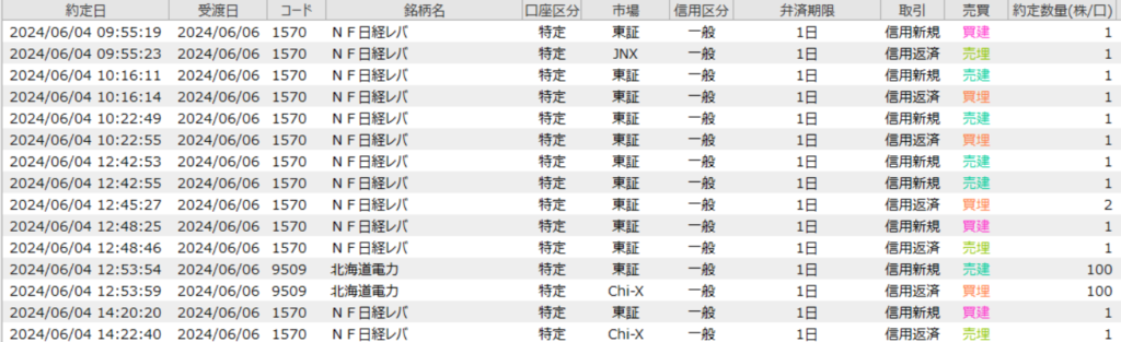 2024年6月4日 デイトレ 日経NFレバ 北海道電力 久しぶりのトレードはうまくいかない