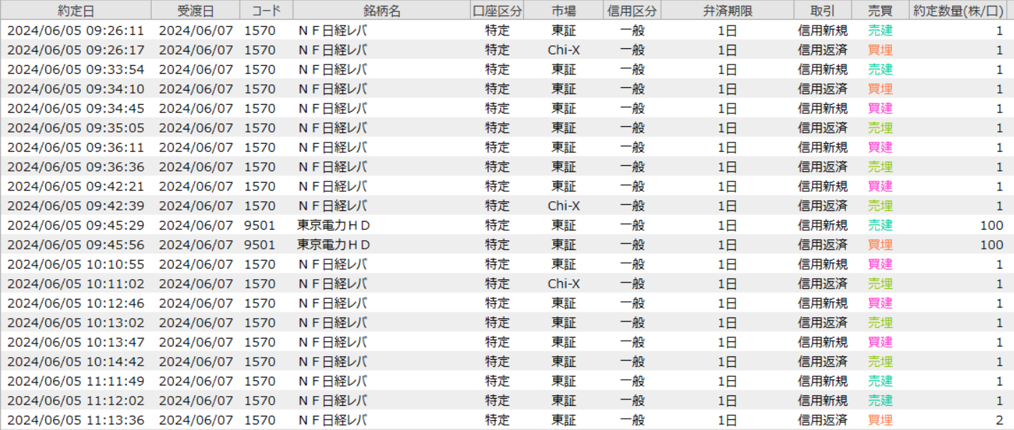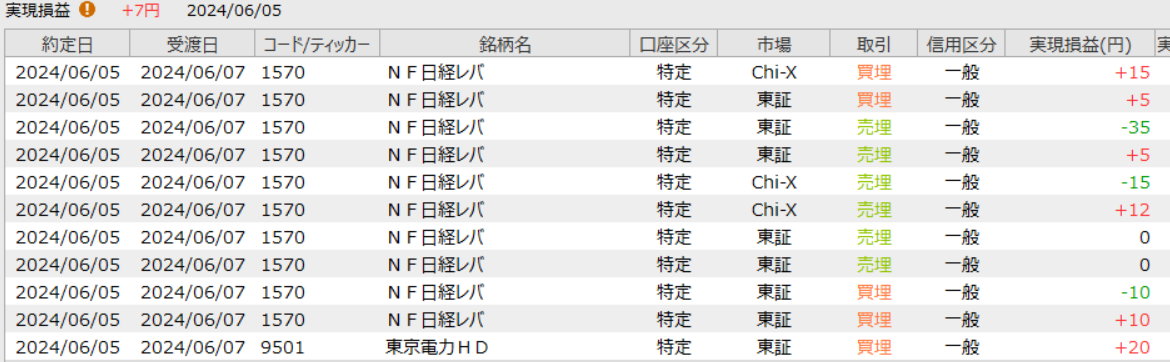 2024年6月5日 デイトレ 日経NFレバ 東京電力 レーザーテック恐ろしい動き