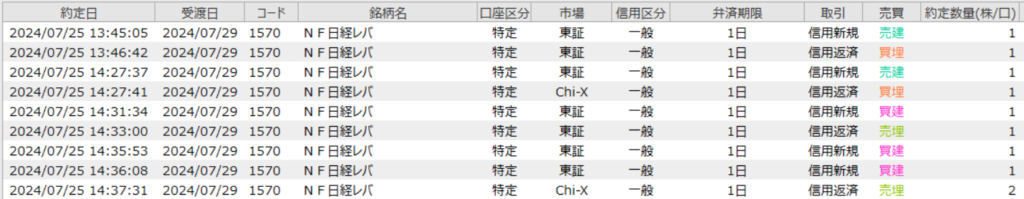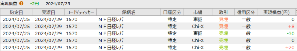 2024年7月25日 デイトレ 日経NFレバ 東証株取引の引下げ検討