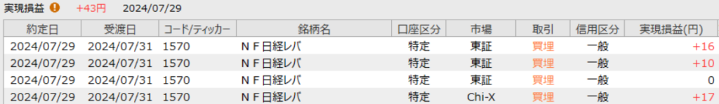43円のプラスでした。なんとかプラスで終われました。
