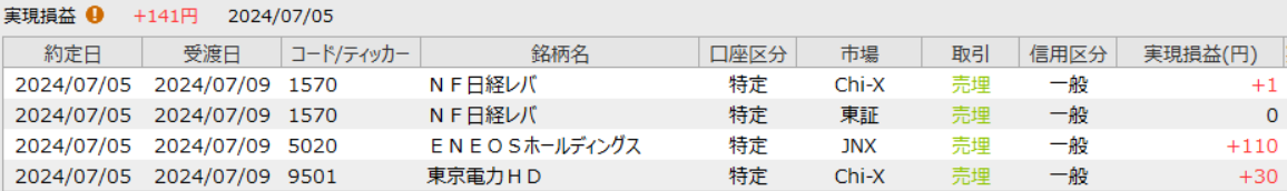 ・東電、ENEOSはダブルボトムから微益だけど利確できた。