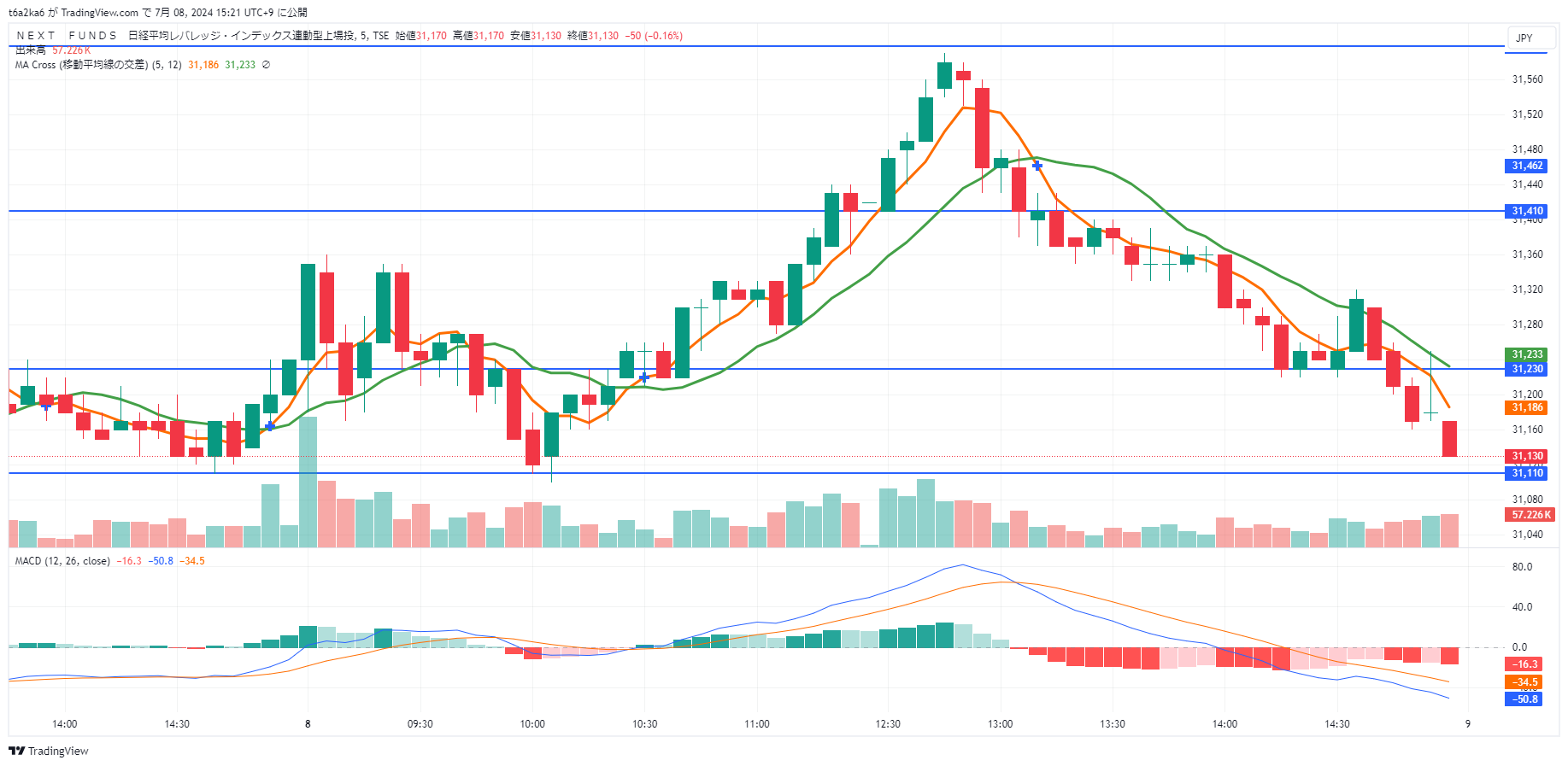 ・NF日経レバの5分足