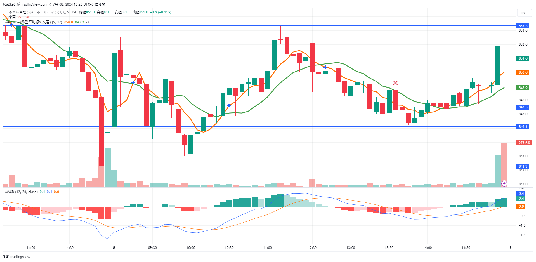 ・日本M&Aセンターの5分足