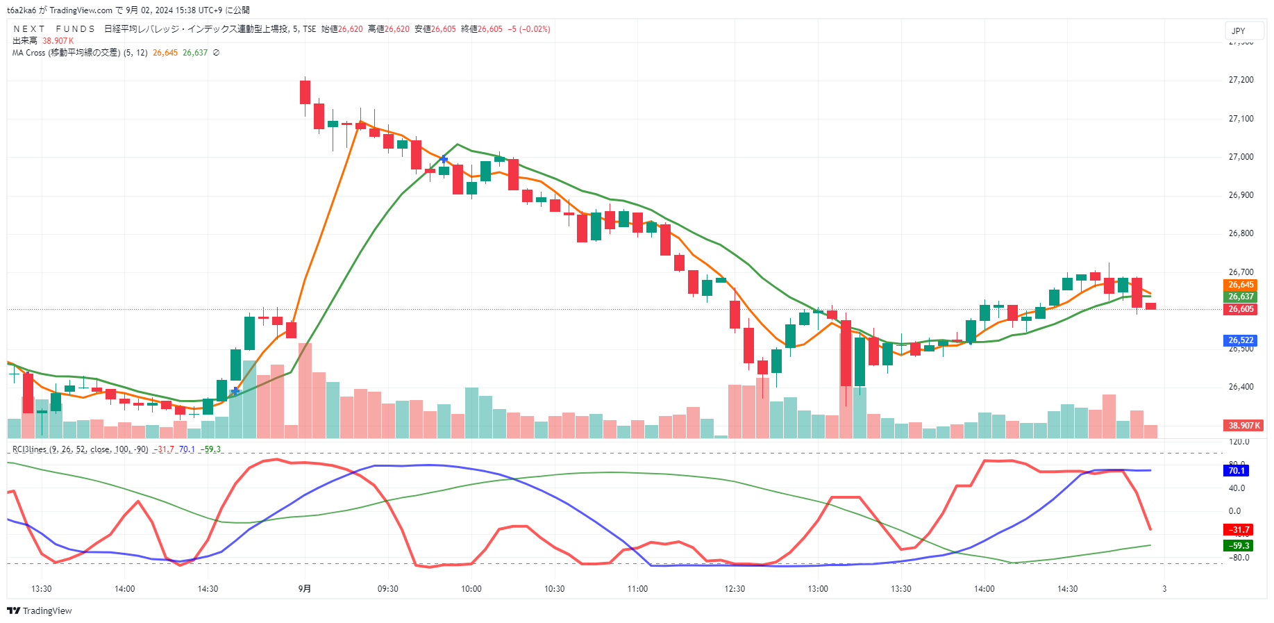 ・NF日経レバの5分足