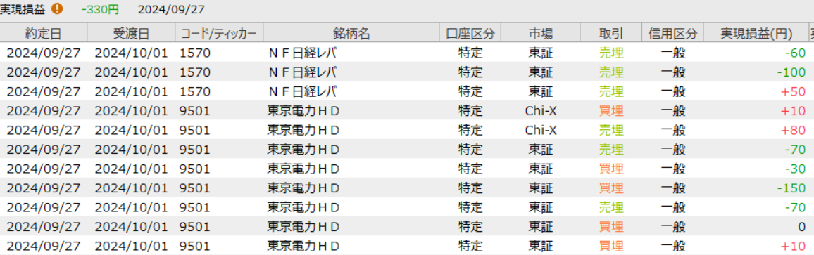 330円のマイナスでした。いつも通り踊らされて終わった。終わった。