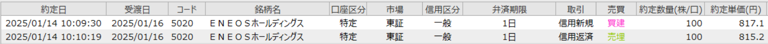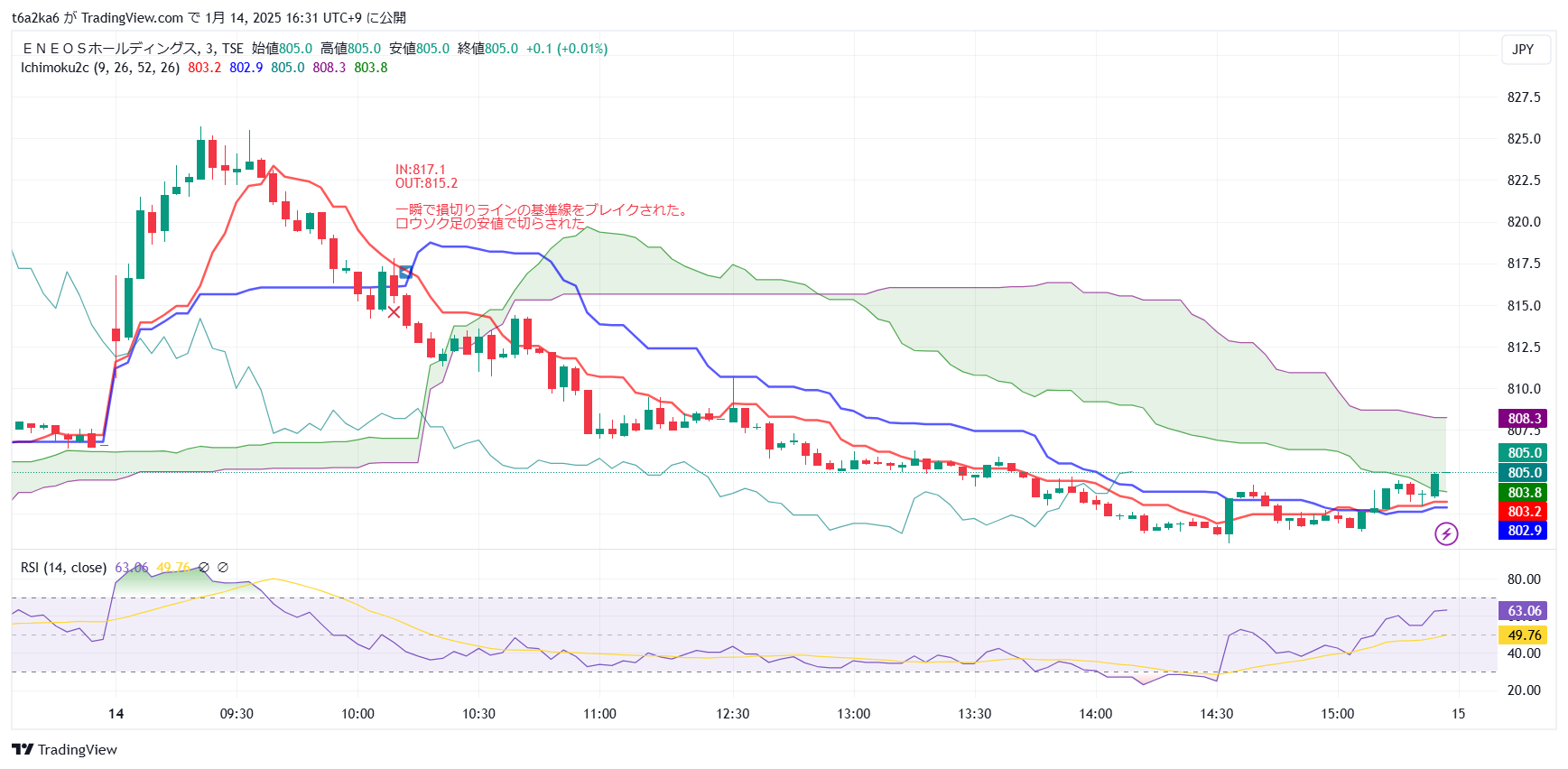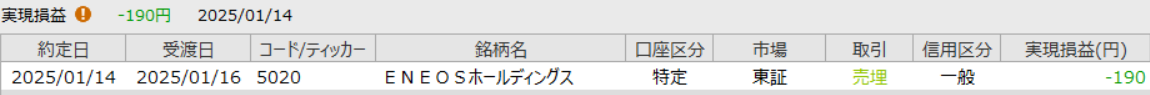 2025年1月14日 デイトレ ENEOS 新年初トレードで得た学び